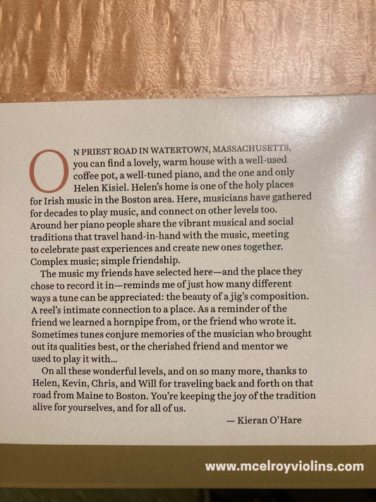 Live From Priest Road - Boston & Maine Irish Traditional Music from Helen Kisiel-Piano, Kevin McElroy-Fiddle, Will Woodson-Flute, Junior Stevens- Accordion and Sean Nos Dancing from Kieran Jordan